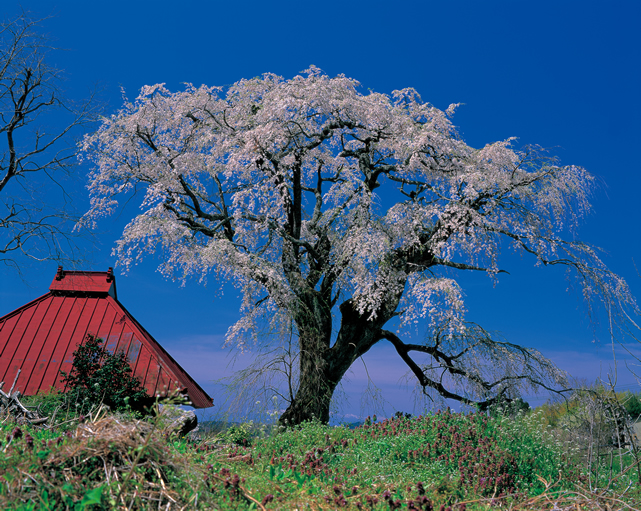 【民家の桜】民家の中にある一本の桜。桜が咲く場所には、昔から人々が集まり楽しく花見をする。そんな場所である。桜は昔から人々に大切にされていて、その気持ちを受け取るかのように大きく立派になっていく。