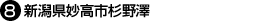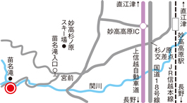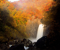 @中村 茂様 AニコンD2X Cf22AE F三脚使用 G新潟県妙高市杉野澤 H10月中〜下旬 I好天の夜明けが良い。朝日の角度によっては滝の横に虹が見えることも。 JJR信越本線妙高高原駅下車、川中島バス「杉野沢行」で「苗名滝入口」まで約25分、バス停より徒歩約40分。または車で上信越道妙高高原ICより国道18号線を長野方面へ進み、杉野沢交差点を右折して12〜13分で駐車場に到着。駐車場から徒歩約15分。 |
