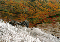 @村松啓三郎様 AニコンD80 Bニッコール18-200 Cf8(−1) D1/125 FSL・三脚使用 G長野県松本市乗鞍岳中腹2,350m位ヶ原山荘付近 H10月上旬 夜明け〜9時頃 I山荘に泊まり日の出をねらいたい。9月末までは朝3:40発のご来光バス(有料)が便利。 JJR中央本線松本駅→上高地線「新島々駅」→松本電鉄バス「乗鞍高原行」約50分で高原入口→シャトルバス「畳平」下車。または車で、長野自動車道松本ICから国道158号線で上高地・高山方面へ約50分、親子滝トンネル出口左折約10分で高原入口。シャトルバスに乗り換え。※車は進入禁止 |