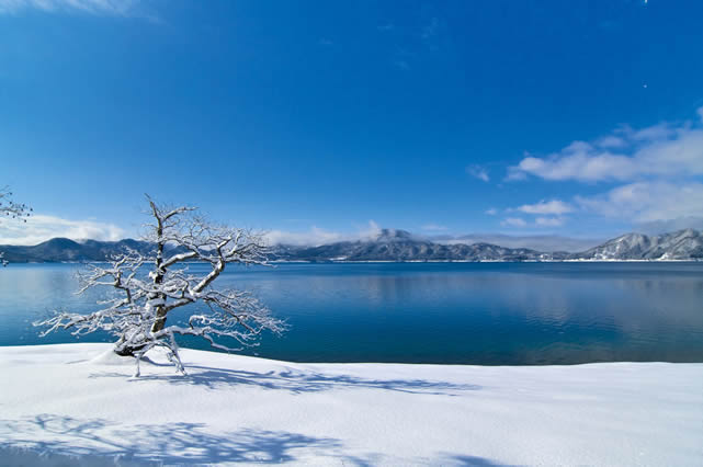 【吹雪の翌朝】別の場所へ急いでいたら、田沢湖の雲が開いていた。今見ているものを大切にしようと思い、ここで約2時間を費やして撮影した。おかげでバリエーションのある良い撮影ができた。