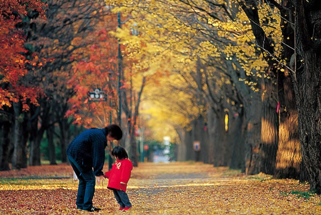 中でも北海道大学病院に隣接しているイチョウ並木は、長さ380mの道路の両側に70本のイチョウが植えられていて、秋の黄葉は圧巻。その他、構内には自然豊かな撮影スポットがたくさん点在しています。