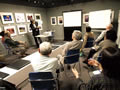 熱心にセミナーを聴く参加者。 句会形式で皆で楽しく学べます。 板見氏自身の作品をスライドで紹介。