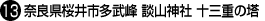 (1)北浦 徹様 (2)ペンタックスK10D (3)18-250 (4)f8 (5)オート (7)三脚使用 (8)奈良県桜井市多武峰 談山神社 十三重の塔 (9)2月中旬 9時頃 (10)急な坂でのスリップに注意。 (11)JR桜井線桜井駅下車、奈良交通バスで約25分、「談山神社前」下車、徒歩約5分。または西名阪自動車道天理ICより国道169号線を南へ約25分、県道37号線を南へ約15分。 |