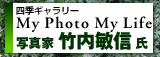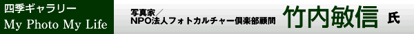 NPO法人フォトカルチャー倶楽部設立時より、顧問としてアマチュア写真愛好家の活動を見守ってきた竹内敏信先生。しかし、2007年6月に脳内出血で倒れられ、約5ヵ月間におよぶ入院。そして現在もリハビリ通院されている竹内敏信先生。そのような中、昨年12月に東京のキヤノンギャラリー銀座で退院後初の写真展『照る日・曇る日』を開催。また、今年の1月にはBSジャパンの番組“写真家たちの日本紀行/新春スペシャル”で元気な姿が放映されました。今回、入院〜退院、そしてリハビリをしながらの撮影活動のお話をお聞きすることができました。また、放映された番組でもご一緒に出演され、竹内先生の傍らに常に寄り添っていらっしゃった昭子夫人にも貴重なお話を伺うことができました。