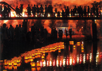 (1)田中 剛様 (2)オリンパスE3 (3)ズイコーデジタル12-60 (4)f6.3 (5)1/4 (7)三脚使用 (8)埼玉県飯能市大字上名栗 鳥居観音下の名栗川 (9)8月下旬 午後6時頃 (10)灯籠流し後半に行われる花火(ナイアガラ)がシャッターチャンス。 (11)西武池袋線飯能駅、またはJR八高線東飯能駅下車、バスで名栗車庫行・名郷行・湯の沢行のいずれかに乗り連慶橋停留所下車、徒歩約5分。または車で圏央道青梅ICを降り、岩倉街道から成木街道を経て名栗方面へ、約30分。 |