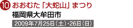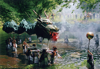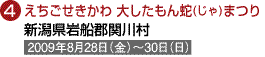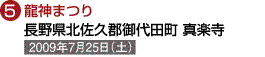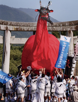 (1)出口博康様 (2)キヤノンEOS Kiss Digital (3)EF28-135 (4)(5)オート (8)長野県北佐久郡御代田町 真楽寺 (9)2007年7月30日 午後1時頃 (10)赤色の眼が点滅するタイミングを見計らって撮るのがポイント。口の火煙の燃え具合でも出来は大きく変わる。水際は足場が悪いので要注意。龍を全身入れるなら超広角を使用。 (11)境内は車両進入禁止となるので、やまゆり公園及び御代田駅からのシャトルバスを利用。 (12)龍神まつり実行委員会事務局(御代田町役場産業経済課商工観光係内)TEL.0267-32-3111 |