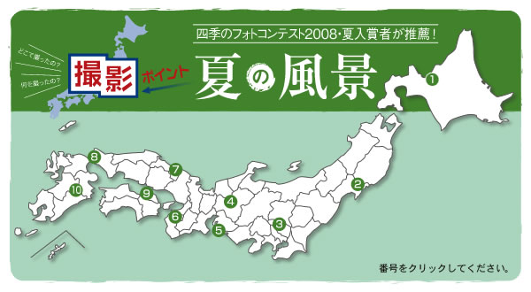 「撮影ポイントが知りたい」というお客さまの声にお応えするコーナーです。今回のテーマは夏の「風景」と「祭り」。撮影ポイントと写真、そして撮影アドバイスはコンテスト入賞者の方々にご協力いただきました。ぜひご活用ください。