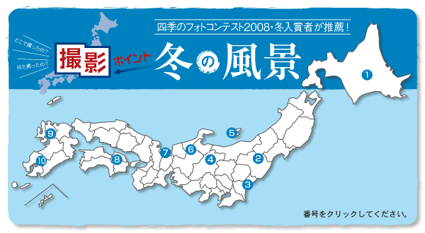 「撮影ポイントが知りたい」というお客さまの声にお応えするコーナーです。今回のテーマは冬の「風景」。撮影ポイントと写真、そして撮影アドバイスはコンテスト入賞者の方々にご協力いただきました。ぜひご活用ください。