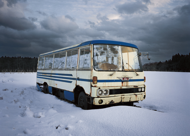 廃車となり畑に置き去りにされた小型バス。夕方、気温が急激に下がり、窓にうっすらと霜が付着する。じっと見つめていると、バスに不思議な魂が宿り、今にも動き出しそうな気配を感じた。
