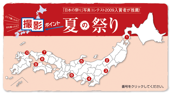 「撮影ポイントが知りたい」というお客さまの声にお応えするコーナーです。今回のテーマは夏の「祭り」。撮影ポイントと写真、そして撮影アドバイスはコンテスト入賞者の方々にご協力いただきました。ぜひご活用ください。