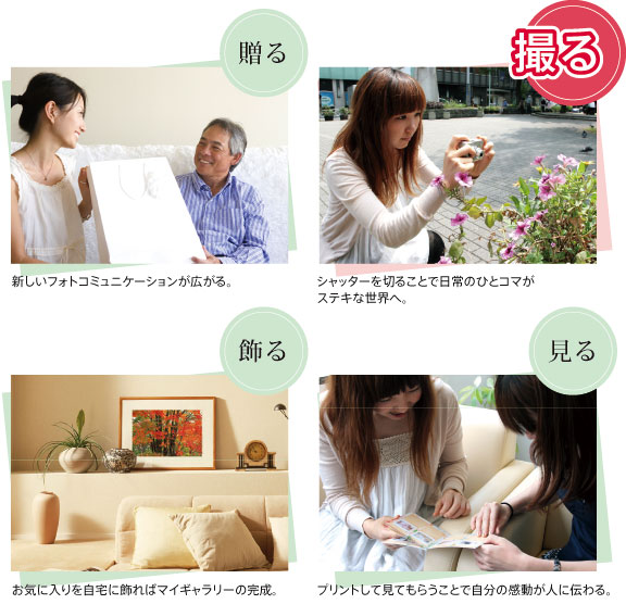 また、撮った写真はプリントして自分で楽しむ、仲間と一緒に見て盛り上がる、ブログに撮った写真を公開するなど、写真を通じてさまざまな自己表現が可能です。