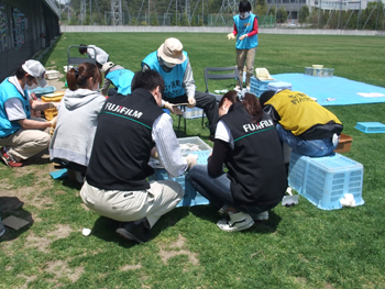 被災地での活動(七ヶ浜町・サッカースタジアムで)