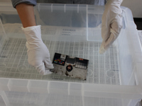 翌日から週末を中心に富士フイルム社員が現地訪問。8月末までに東北地方延べ約80カ所の避難所・自治体を訪れ、40カ所以上で洗浄のレクチャーをしました。6月末からの1ヶ月間は、被災地の写真を預かり、富士フイルムグループ社員・OB、その家族のボランティアで写真洗浄をしました。OBや多くの社員から「なにかできることはないか」と声が上がっていたこともあり、会社をあげて洗浄ボランティアに取り組んでいます。