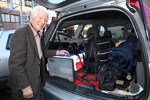 取材の時間はあっという間にすぎてしまい、門出さんを車の場所までお見送りすることに。そこで、ひそかに門出さんの車を楽しみにしていた編集部は「ぜひ車のなかも見せていただきたいのですが・・・」と無理なお願いをしました。「この間の撮影から整理していないからなあ」といいながらも快く車内を見せてくれた門出さん。散らかっているなんて、とんでもない。とても整頓されて使い勝手のよさそうな車内でした。その後、車に乗り込み、笑顔で颯爽と去っていった門出さんを見て、いつまでも富士山を追いつづける若さと元気さに驚く編集部なのでした。