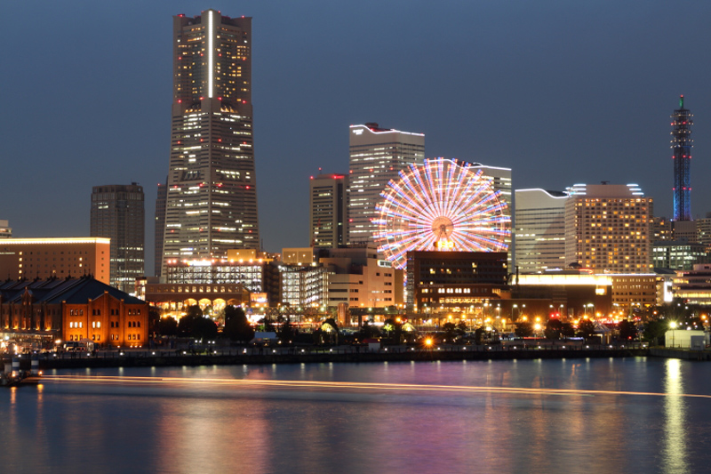 夜景のモチーフとなるのは広めの都市風景などです。最近では工場地帯の夜景など、人工光源が作り出す独特の光も人気です。ただし撮影場所が限られたり制約も多いので、イベント的な要素での撮影も多くなってしまう点は仕方ありません。 一方で都市風景であれば、大都市からちょっとした繁華街まで、いつでも撮影できます。広角ズームレンズ一本と三脚だけで手軽に楽しむことが出来ます。日中見なれている街並みでも夜になるとまた違った表情を見せてくれます。同時に車のテールランプなどの軌跡を同時に写しこむのも面白い効果です。露出はカメラ任せだと、見た目もしくは若干暗めに写ることが多いのでややオーバー気味の露出に設定します。そうすることで光源がより明るく、そして被写体全体が肉眼以上に明るく見え人工光源で照らされた雰囲気の強い写真に仕上げることができます。