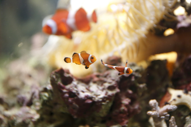 水槽への写りこみは水槽にレンズをつけたり、暗い服装で撮影することで防ぐことができます。水槽に対して離れた位置で撮影すると反射が出てきます。また水槽に対して斜めに撮影すると、水槽のアクリルの厚みによって水槽内が歪んでピントが合わなくなるので注意します。ピント合わせをAFにしている以上、ピントがどこかに合焦していないとシャッターが切れないので気をつけてください。
