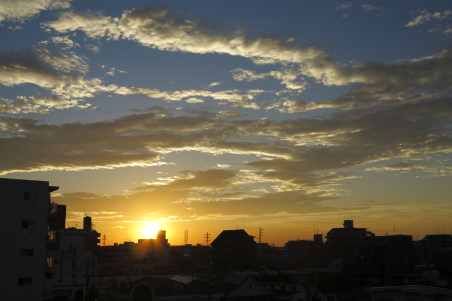 そんなときにわずか1時間の間で光の変化を楽しめる、朝夕の撮影もオススメです。朝夕の赤い光や日が上る直前、直後の空の色など日中では決して見ることのできない光のグラデーションを楽しめます。特に日の出直後、日の入り直前は朝夕の陽の光は相対的に色温度が低くなります(4000K~2500K)。そのため、全体的に赤みがかって空の色は見えます。ただ、カメラのWB設定をオートにしているとその赤みを補正してしまうのであまり朝夕の赤い光の様子は出てくれません。赤みを持ったままで写真を表現したい場合はWBの設定を太陽光(5600K付近)や曇り(7000K)にセットしておくことが肝心です。