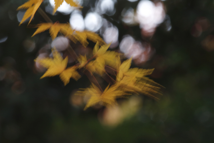 ともあれ11月下旬になり、地域によっては全山紅葉というには時期が少し遅い、そうなれば身近なところでも見られる数枚残ったカエデの葉っぱを狙ってもいいでしょうし、散って地面に落ちた葉の様子を捉えてもいいわけです。紅葉のピークから散った後までというのも、桜の撮影と似ているところがあります。