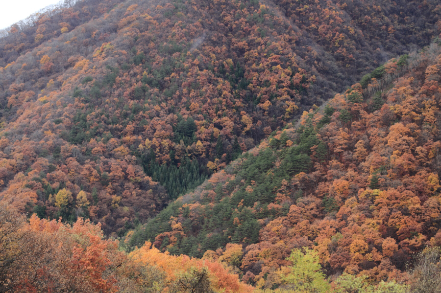 11月も後半にさしかかると、市街地の木々が色づき始め身近な紅葉を楽しむことができます。桜は咲き具合、紅葉は色づき具合といったように周辺地域の気温に影響され、それにともない特に撮影地を選定する場合はその地域の標高を基準にすることもあります。寒暖差がある場所の方が紅葉は早く、また小川の脇など水温が冷たい場所の冷気があたる場所も紅葉が周辺よりも若干はやくなると言われています。例年11月20日をすぎたあたりになると標高1000m以下の地域で見頃から散り始めといったところが多いようです。山間部など標高の高い地域では少し茶色が強い木々が目立つのですが、そんな地域でも標高差があれば多少の残り紅葉を散見できますし、太陽の角度によってちょうど順光のライティングで木々が輝きを見せることもあります。