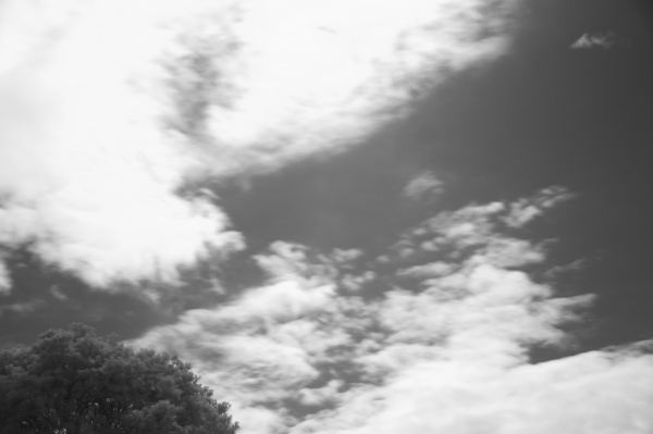 撮影するのであれば、なるべく快晴、遠方が見通せる構図で、雲があり手前に樹や建物などがあり遠近感がある景色がいいでしょう。また、IRフィルターは赤色とはいえほとんど黒に近く、肉眼では素通しで反対側を見ることができません(可視光線を吸収するため)。よってレンズにフィルターを装着した状態ではカメラのファインダーで被写体を確認できませんので、フィルターを外した状態で確認。ピントはマニュアルで絞りをなるべく絞って撮影してください。