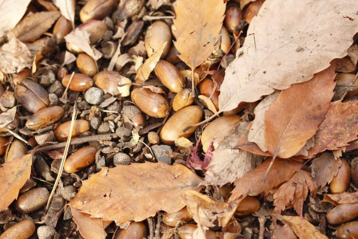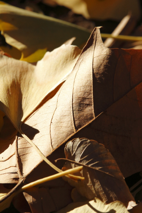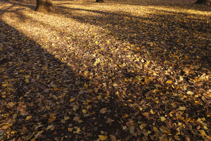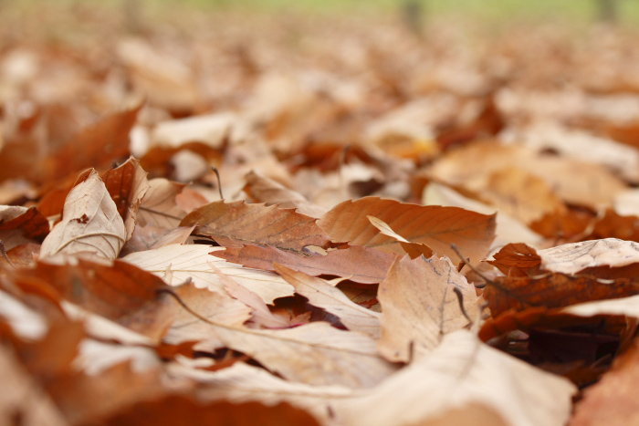秋が終わり、葉が地面に落ち、その上に雪が降り積もり、また新たな葉が芽生えるという1年間の自然のサイクル。普段気に留めていないところで繰り返し営まれている自然のワンシーンを象徴する落ち葉や枯れ木はさびしくもありますが、とてもフォトジェニックな被写体です。「落ち葉」ですのでアイレベルから見おろすように撮影することもあれば、落ち葉の目線で、地面すれすれにカメラを構えて撮影するのもいいでしょう。その際可動式の背面液晶があれば便利で、なければアングルファインダーも便利です。落ち葉との距離が近くなるので、ピント位置を変えることによる前ボケも作りやすいです。