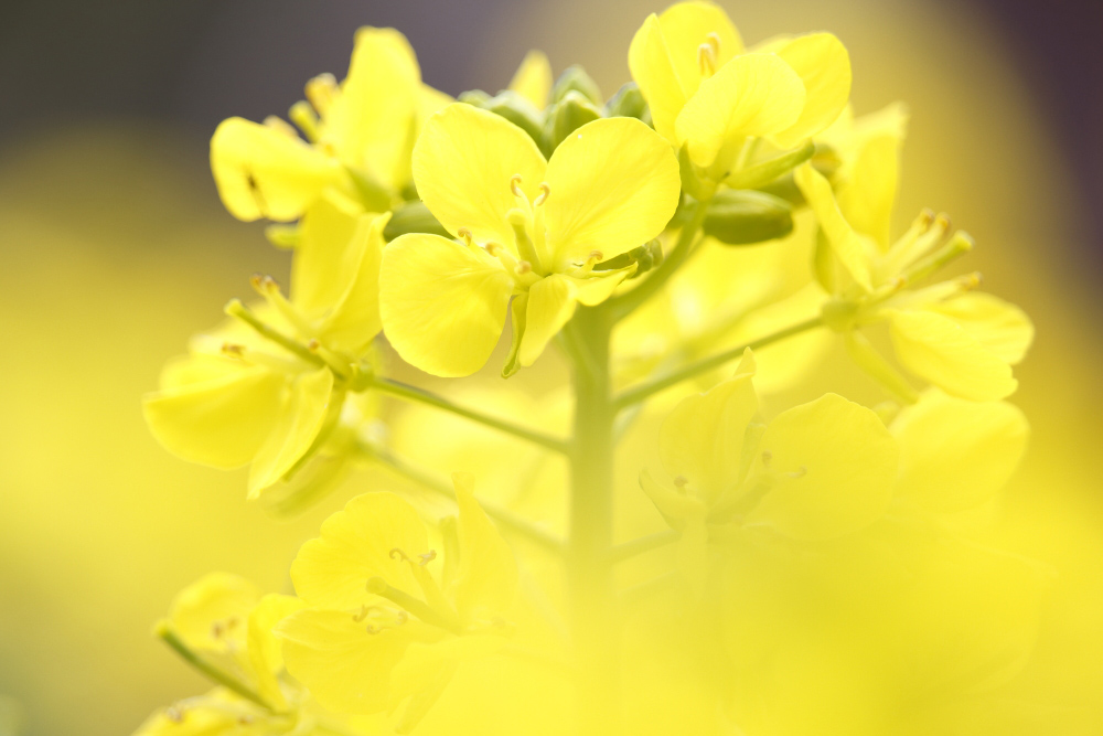 作例に黄色い花があります。マンサクと菜の花です。黄色は明るい色で、明るいということはカメラの露出計のままに露出を計るとアンダー目に仕上がる可能性が高くなります。作例のように黄色が画面を占めている場合は+1.3~+2程度の補正は必要です。撮影時の天候は快晴。12時ごろでちょうど真上から陽がさしている状況です。もちろん主役の色だけでなく背景の色や明るさによって補正量は変わってきます。背景が明るければその分プラス側の補正が想像できますし、反対に暗くなっていれば大幅なプラス補正が逆効果になることもあります。作例にあるスイセンの花ですが、花自体は白いものの背景が濃い緑のため補正値はプラス1/3程度で落ち着きました。