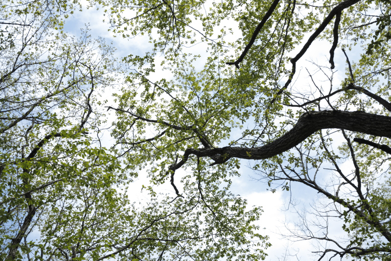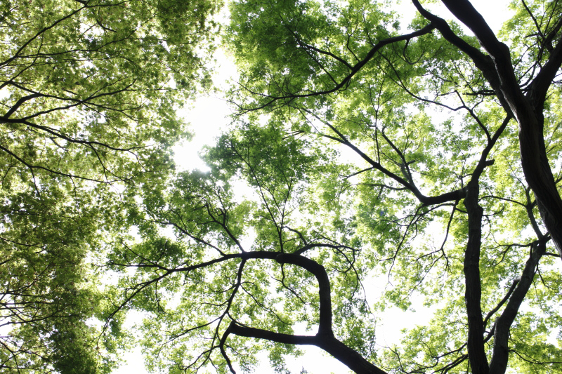 最後のレンズワークです。遠近感を強調できる広角レンズを使い枝や幹の広がりを演出し、望遠の圧縮効果を狙ってクローズアップ。離れて写る木々の間隔をひとまとまりに見せることで主題を明確にすることもできます。広角レンズでは清々しい、見上げた広い写真が撮影できますが、そればかりではバリエーションにも乏しい。望遠レンズも使用し状況に応じたレンズ選択ができるようにしていきましょう。