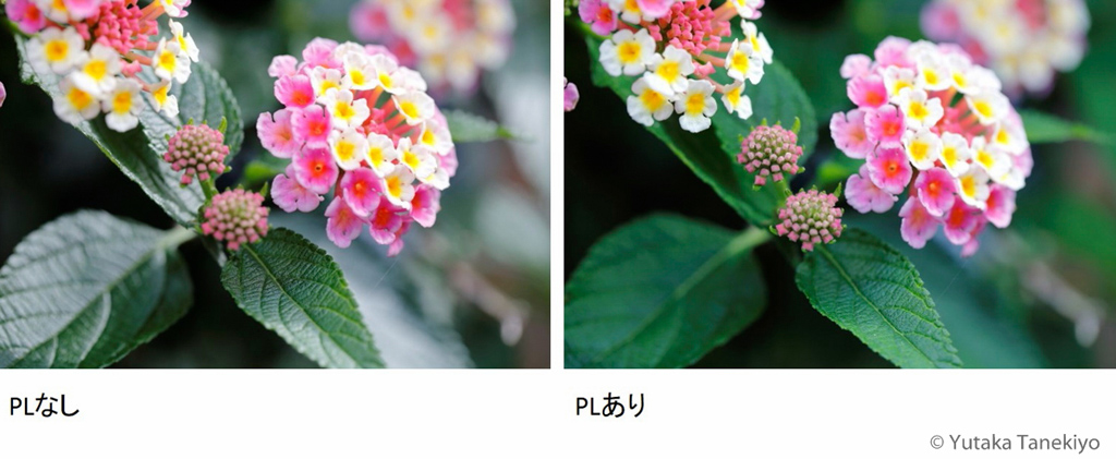 いずれの作例も、PLフィルターなしのものはレンズからPLを外し、PLありのものは、わかりやすくするために最大濃度まで偏光効果をかけています。