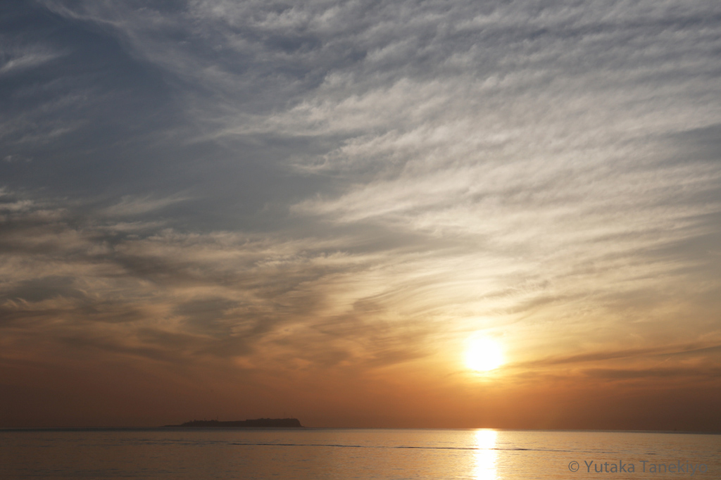 青空が澄み渡り、ぽっかりと雲が浮かぶ空。青と白のコントラストがキレイな日中の表情です。また朝方や夕方に空が焼ける際に見える雲の表情はまた日中とは別物です。海辺の景色と一緒に広角で空を仰いでみても面白いです。