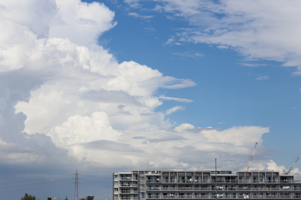 もくもくと湧き上がる入道雲、筋状、渦を巻いたような形の巻雲や筋雲、いわし雲など、梅雨があけ秋ごろにかけてさまざまな形の雲を見ることができます。どれをみても同じ形のものはなく、いざカメラを向けると沢山撮影してしまいます。歩きながら上をふと見上げたとき、自宅のベランダなど身近に撮影できる被写体です。