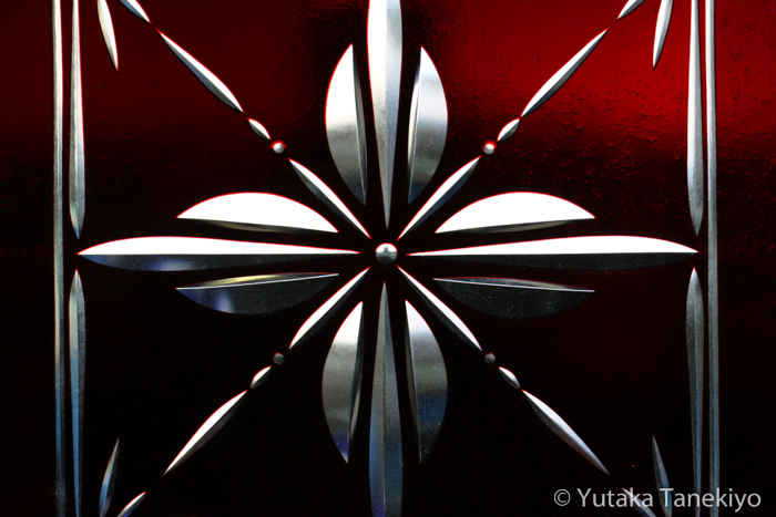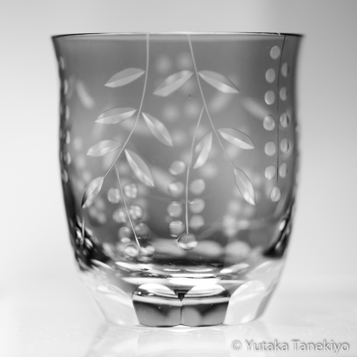 作例はそれぞれ、江戸切子、ワイン栓、ビールグラスです。江戸切子の工場で撮影させてもらった1枚は、独特の模様にマクロレンズでクローズアップしてみました。洋館に展示されていたワインボトルには付属するワイン栓の槍型の形状が面白かったので撮影しました。室内の照明が裸電球だったので、WBを太陽光にして電球の色を残しています。最後にビールグラスの写真は自宅で撮影したものです。板ガラスの上にグラスを置いて下から電球を1灯当てて撮影しています。