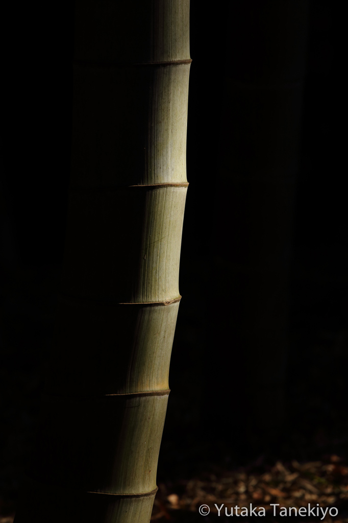真っ直ぐ上に伸びる竹を一見しただけでは、あまりフォトジェニックではないのですが、少しはなれて竹林全体を見渡してみると、風にあおられて大きく揺れるそのサイズ感や笹がこすれる音などはとても風流です。また、竹に近づいてよく観察すると、節の形や竹の表面の色や模様などさまざまな種類があることもわかります。公園などを歩いていてふと竹林に目をやると、時に大変魅力的な光景に出くわします。林立する竹の隙間から差し込む陽の光が竹をシルエットに包んでくれたり、笹や周辺に咲く葉っぱの影が浮かんできたりします。季節によっては地面から顔を出したばかりの竹の子であったり、青々とした美しいい薄緑の竹を目にすることもできます。