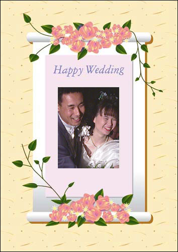ブライダルタイプ(L-1)の1ページ目の編集例。中央の写真スペースにお好みの画像を合成します。