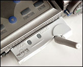 今回フォト美が利用したのは、PHSモバイルカード(カード一体型端末)をデジタルカメラに挿入して、画像送信を行いました。 通信対応型のデジタルカメラは、このようなコンパクトフラッシュ(CF)タイプのモバイルカード(カード一体型端末)が一枚あれば、それをカメラのスロットに挿入するだけでOKなのでオススメです。 |