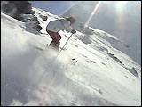 (1)(2)のいずれも、多少の慣れとコツが必要ですが、もっと気軽にかつ確実に成功するのが、この 仲間たちの連携プレーで撮影する方法です。それは、ターゲットとなる人物の滑るコースをあらかじめ決めておき、いくつかの中間地点でカメラを構えて撮影するというもの。この方法で、お互いの滑りを撮影すれば、アフタースキーに盛り上がること請け合いです。ただし、1台だけのデジタルカメラだけでは、ちょっとキビシイかも。 |