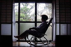 | 祖父の時代から愛用されてきた揺り椅子でくつろぐ母。この写真が、いつかかけがえのない写真になる日が来ると思うと...。 |