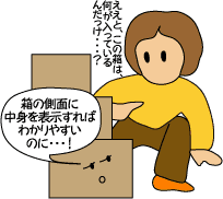 ダンボール箱に詰める荷造りに関しては、箱の中に何が入っているのか、というのがいつでもわかるように、ダンボール箱の内容物を(詰めた状態で)撮影し、その画像を印刷して箱の外に貼り付けておくと、あとの整理がグンと楽に。この時、ダンボールの上面ではなく、側面に貼っておけば荷物を上に積み上げても大丈夫。さらに、部屋番号もつけると、あっという間に部屋ごとの荷物の分類ができます。この方法は、とくに家具の引出しなどにもってこいですね。 |