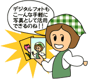さて、これまでデジタルカメラで撮った写真のいろいろな活用術を毎回ご紹介してきましたが、最近では家庭用インクジェットプリンタの向上や、写真画質の専用紙が普及するなど、デジタル画像を より手軽で高品位にプリントできるようになってきました。プリント写真にすれば、デジタルもアナログも関係ありませんから、大切な写真をミニアルバムなどに一枚ずつ綴っていくのも良いですし、小さな額に入れて部屋のどこかに飾るのも良いものです。また、写真をまとめて箱などに保管し、必要なときに取り出して見ることだって立派な活用術のひとつです。こんなふうに、デジタルカメラで撮った画像でも、まずはプリント写真にするという使い方が一般的になると、デジタルカメラの活用方法もフィルムカメラと同じように、ぜんぜん難しくないということが実感できるのではないでしょうか。 |