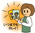 ところで、プリントされた写真をキレイなまま永く保存するには、いくら写真画質の専用紙を用いても、インクジェットプリンタで出力したものではやはり限界があります。しかし、お店に画像データを持ち込んでプリント写真(デジカメプリント)にしてもらえば、銀塩写真と変わらぬ品質で出来上がってきますので、いつまでもキレイなまま残すことができます。今後は、あなたのとっておきの写真だけでも、お店でプリントしてもらうというのもカシコイ方法かもしれませんね。
