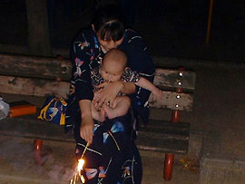 赤ちゃんと花火という取り合わせが斬新でした。素朴な雰囲気もGOOD。もう少しカメラを赤ちゃんの目線まで下げても良いですし、人物をはっきり写すと、なお良くなると思いますよ。