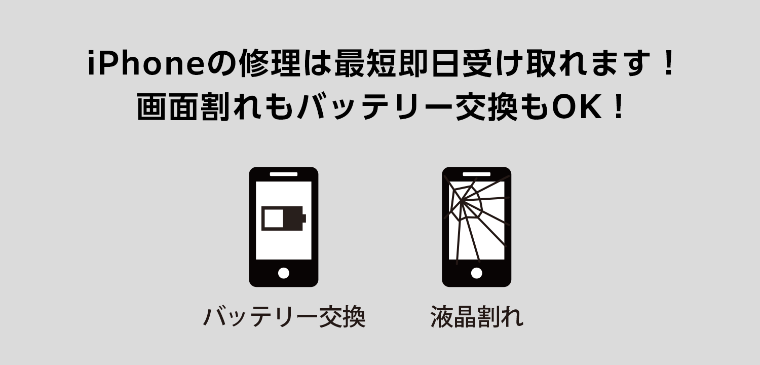 iPhoneの修理は最短即日受け取れます! 画面割れもバッテリー交換もOK!