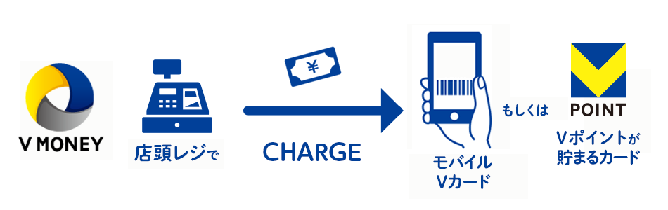 Vマネーのご利用は、チャージ済みのVポイントが貯まるカードをご提示いただくことでもご利用いただけます。