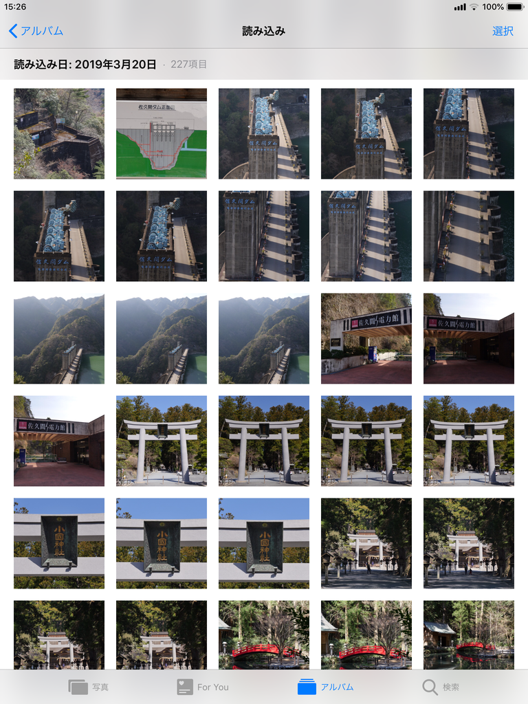 スマートフォンより大きく明るい画面で、撮影した写真を一覧できるがiPadの利点である。