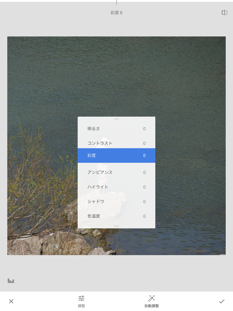 メニューから「画像調整」を選んでさまざまなパラメーターを操作して写真の現像処理ができる。