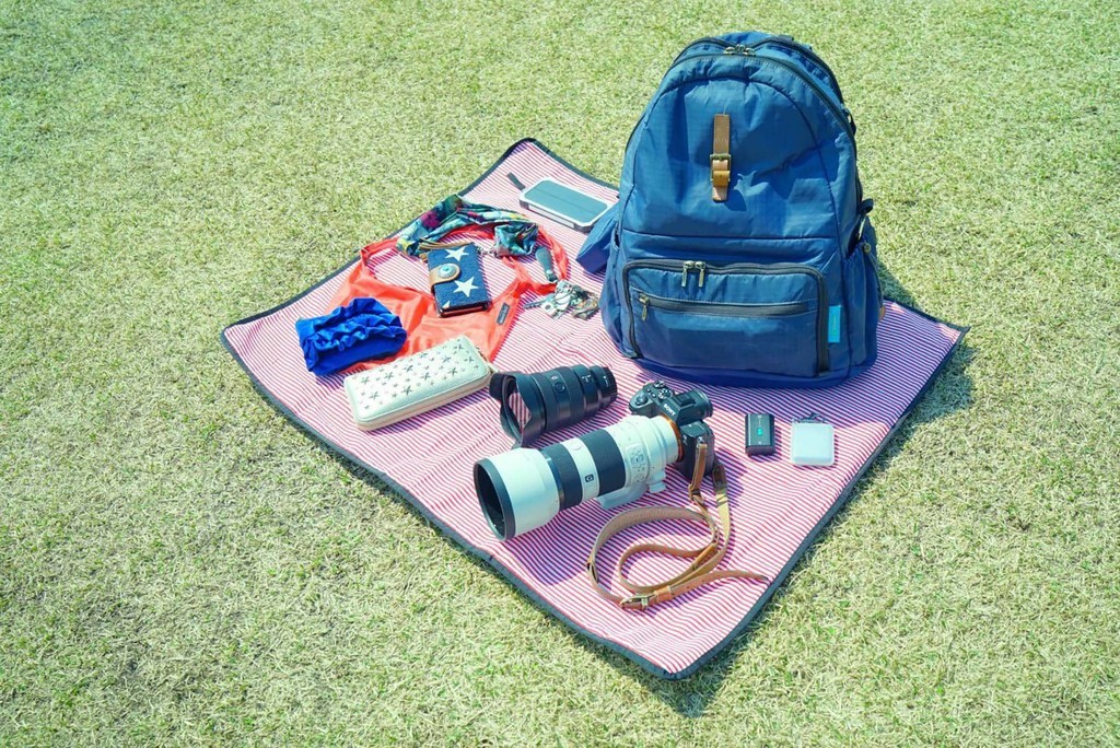 女の子が背負っても可愛らしいシルエットになっていますが、たくさんの機材を入れることが出来ます。いつもの私の例で言うと、ミラーレスカメラ1台、レンズ2~3本、パソコン、iPad、お財布、鍵、携帯電話、携帯電話の充電器、化粧ポーチ、バッテリー2~3個などなどをごっそり入れて持ち運びしています。
