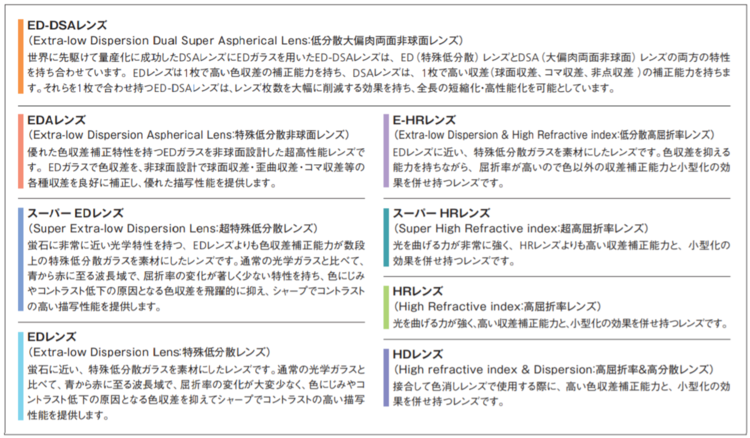 HRレンズは屈折率が高く、収差補正能力に優れたレンズです。テレコンバータは自身の収差の発生を最小限に抑えなければ、組合せて使用するレンズに相性が生まれてしまいます。