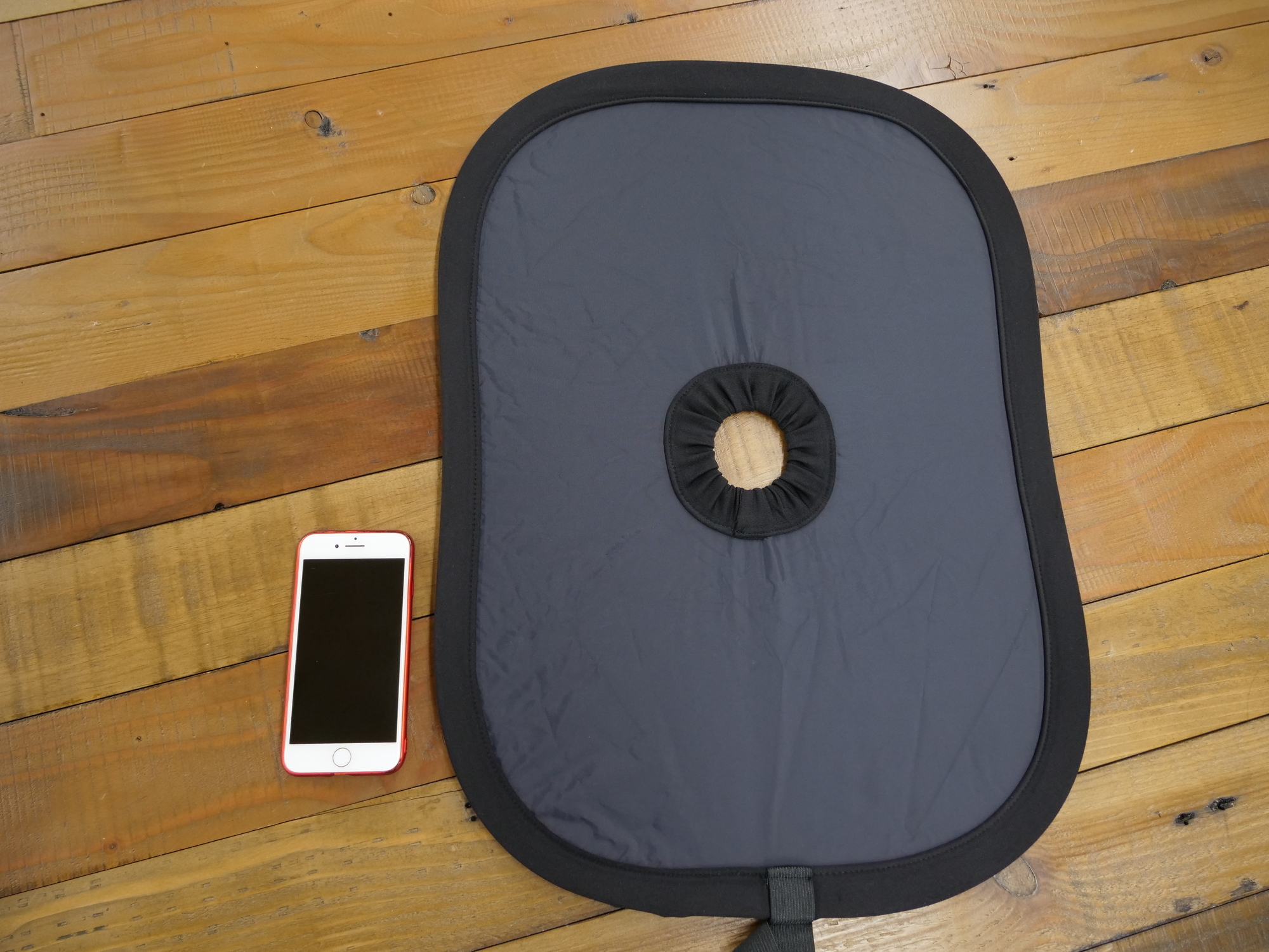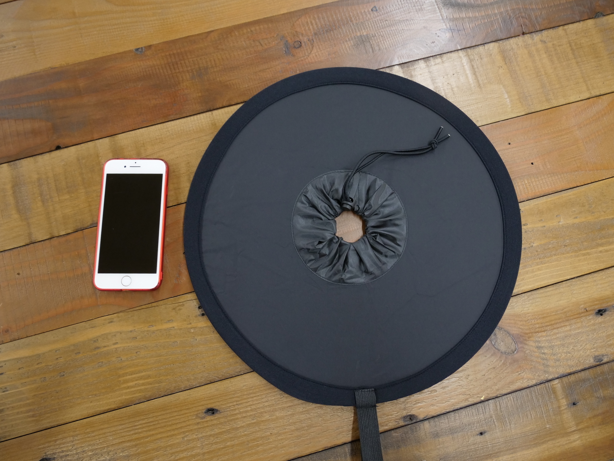 黒い面を自分の方に向けて被写体へ光を反射させることで、他のレフ板と同様に使用することもできるので、1枚あれば助かるアイテムです。
