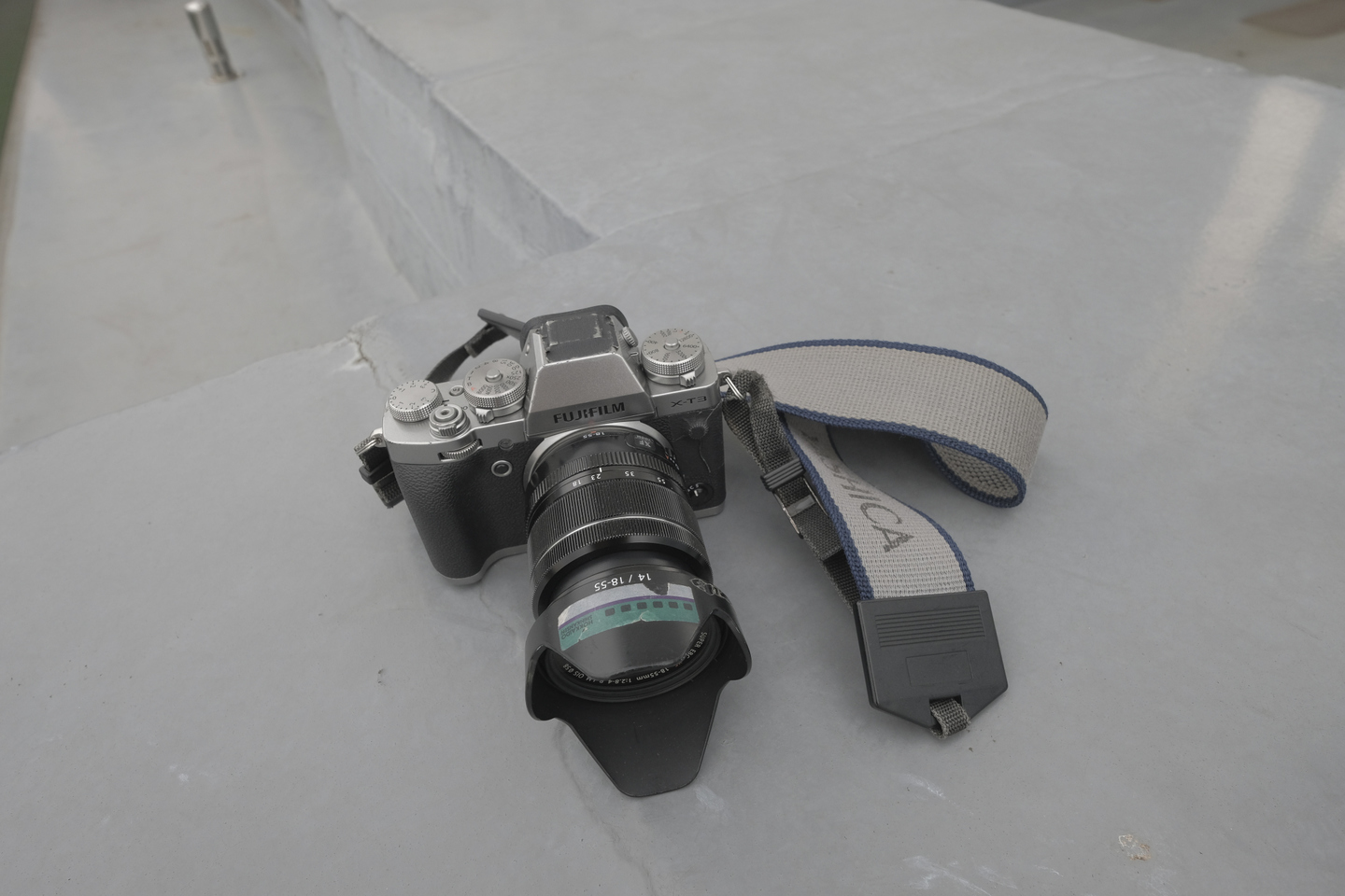 ■旅のメインはX-T3+FUJINON XF18-55mm f2.8-4R LM OISを使用。すぐ撮影できるようバッグには入れず、首や肩から下げている