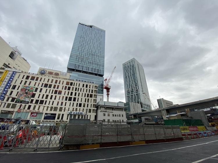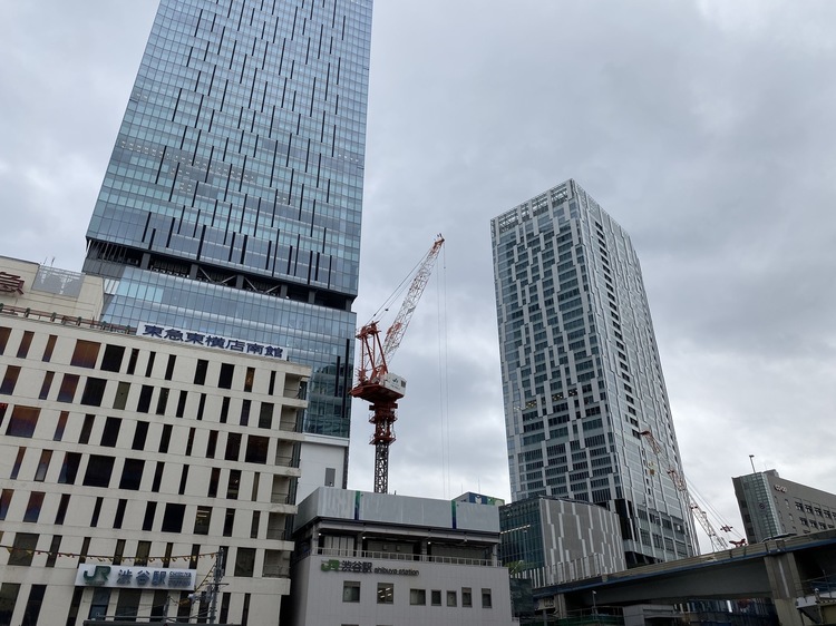 ■再開発真っ只中の渋谷駅前を広角カメラで撮影。新しく建ったビルの窓ガラスなど、ディテールもしっかりとしており、曇天の空気感もうまく写し捉えている
