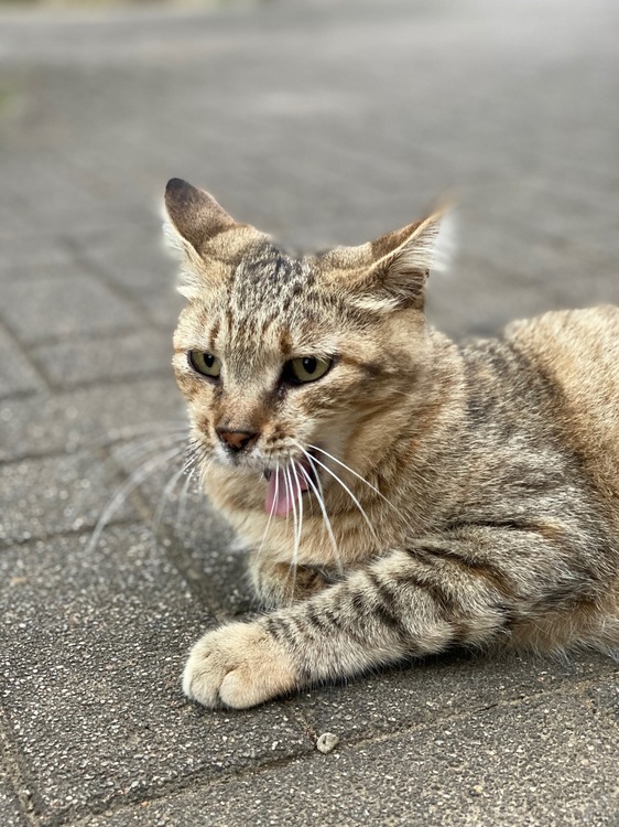 ■iPhone 7 Plusから搭載されたポートレートモード。背景をソフトウェアの力でぼかす機能だが、相変わらず被写体を背景の境界部分は弱点のようで、うまく輪郭を処理できていない。アクビをするネコのヒゲ、ミミの先端が背景に溶け込んでしまっている
